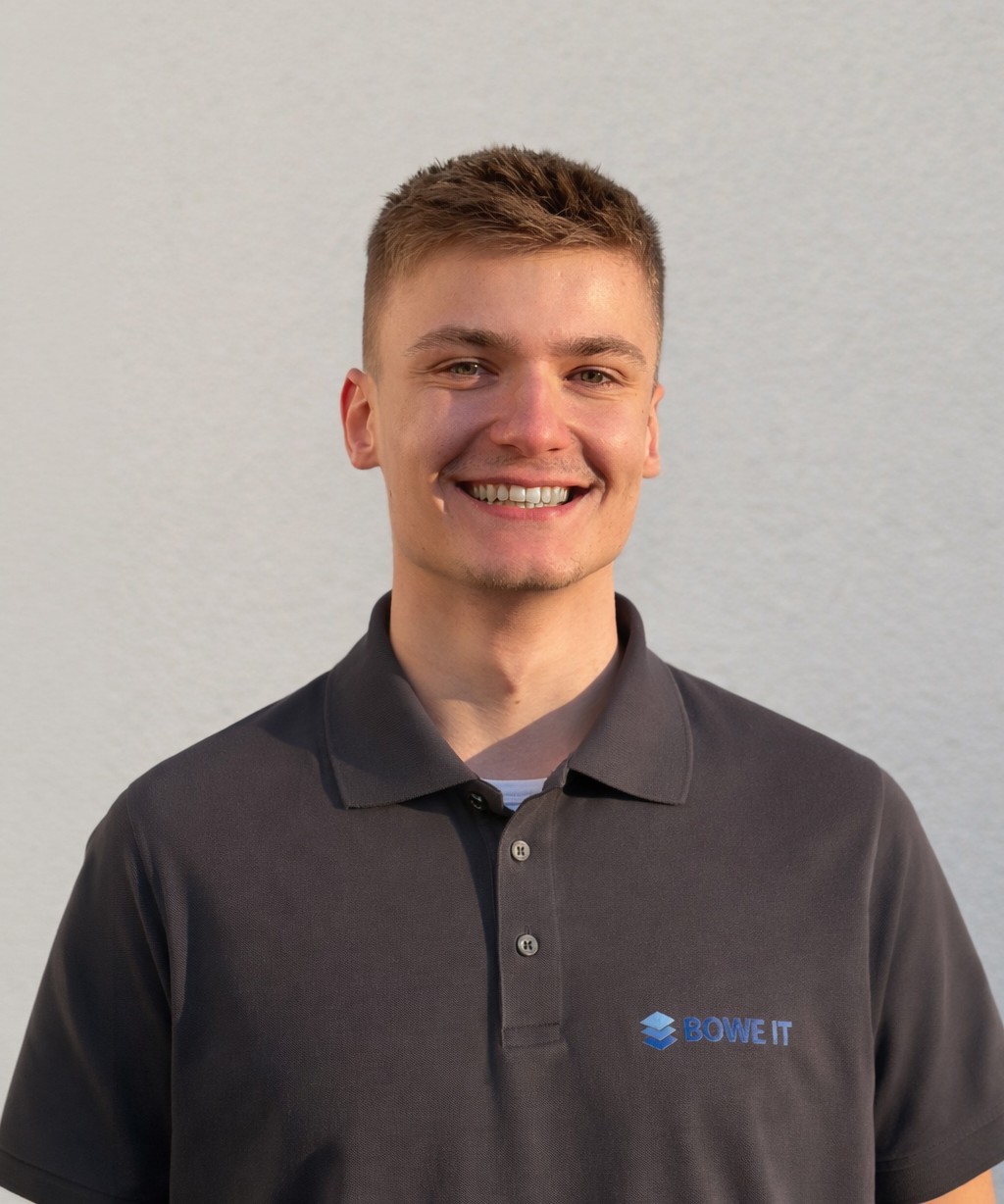Jonah betreut bei BOWE IT sämtliche Themen rund um Hardware, Netzwerktechnik und IT-Sicherheit. Dazu zählen die Arbeitsplatzkonfiguration, der Aufbau von Netzwerkinfrastrukturen sowie die Implementierung von Backup- und Sicherheitskonzepten.